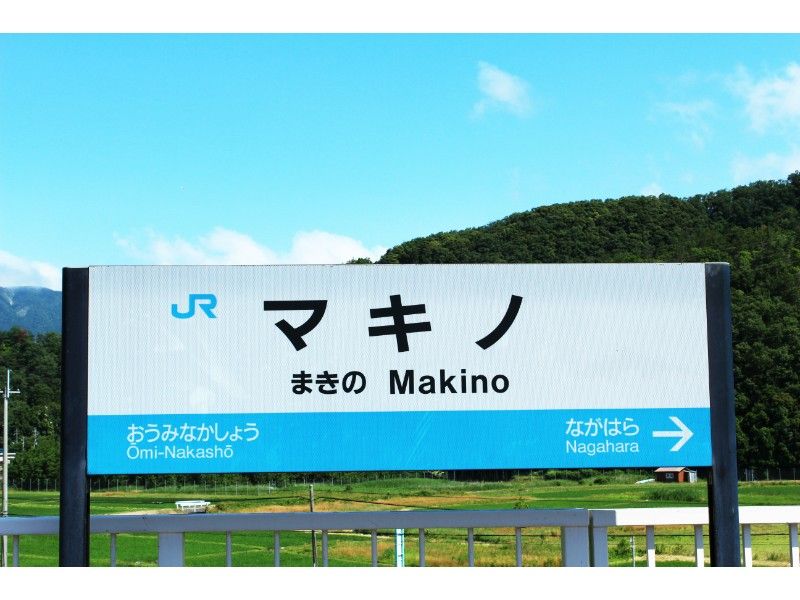 日本の駅では珍しいカタカナ表記の駅名です。これは、開業当時の所在自治体である「マキノ町」に由来するものですが、町名は「マキノ高原スキー場」にちなんだものであります。なお、開業当時、国鉄駅でカタカナ表記の駅名は他にニセコ駅(北海道・函館本線)のみでした。