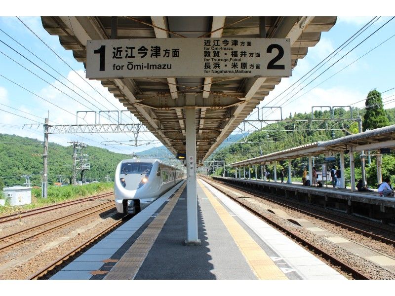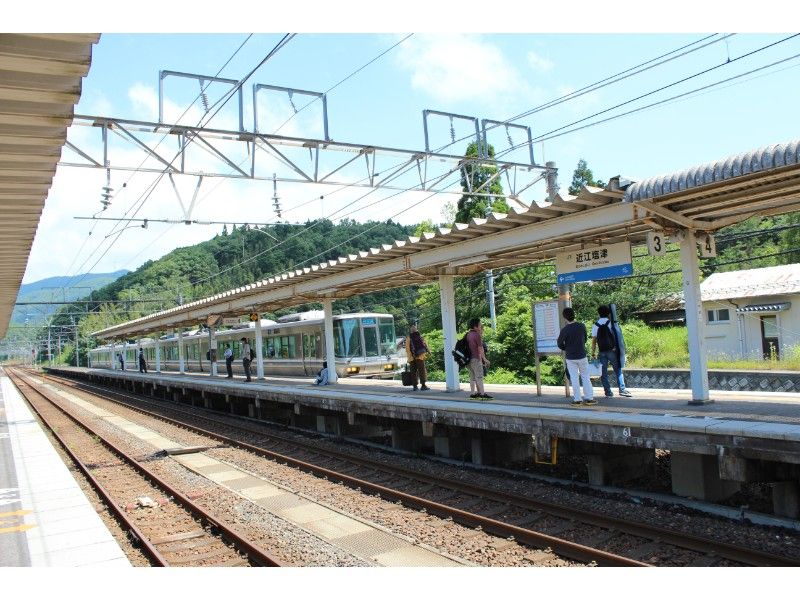 滋賀県の駅では最北端の駅で、観光案内所が同居する大きな和風の駅舎です。