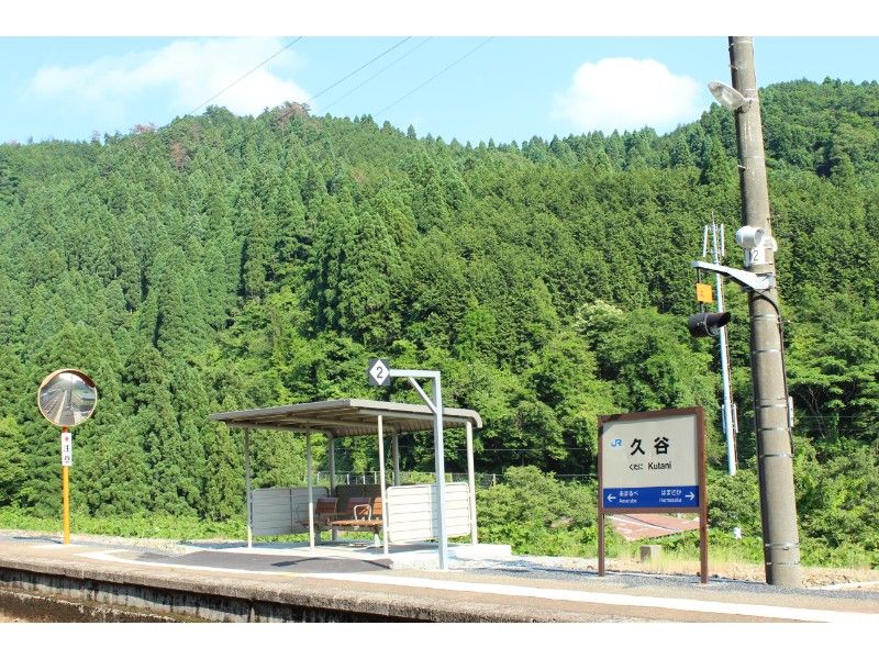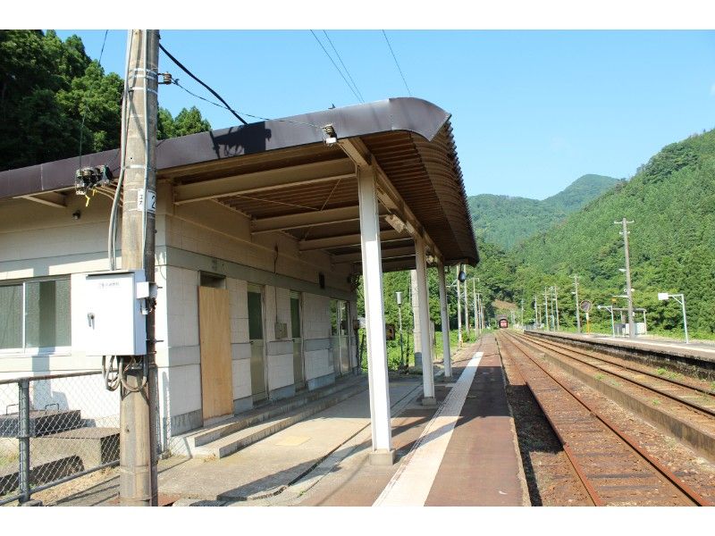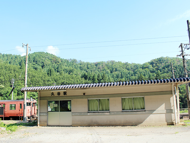 山間に、ひっそりと佇む平屋のコンクリート造の駅舎です。