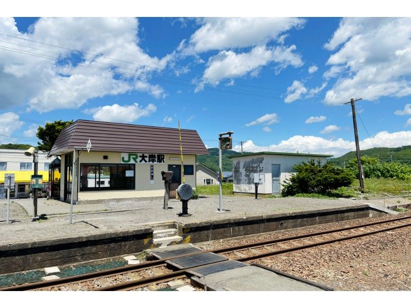 この駅は夏には旅人で賑わい、大きなリュックを背負った人達が列車から降りてきます。近くの砂浜に大岸キャンプ場があります。駅には北海道の観光地図が張られ、寝台タイプの椅子もあります。おそらく駅で寝る人もいるのでしょう。駅前の店はキャンパーの買い出しに利用されているようです。