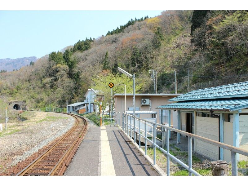 トタン屋根の古い木造駅舎です。ガラスを多用し、斜めにカットされた入口など、開業当時はハイカラだったのかもしれません。