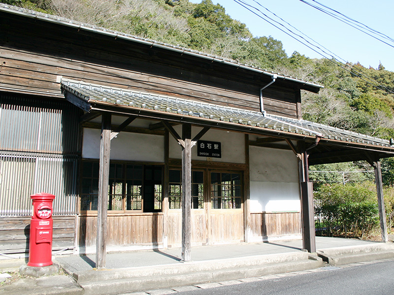 白石駅は明治41に当時の鹿児島本線の駅として開業しました。その時建設された木造の駅舎は、無人駅ながら今でも使用されています。駅前には昔懐かしい丸型ポストも健在です。