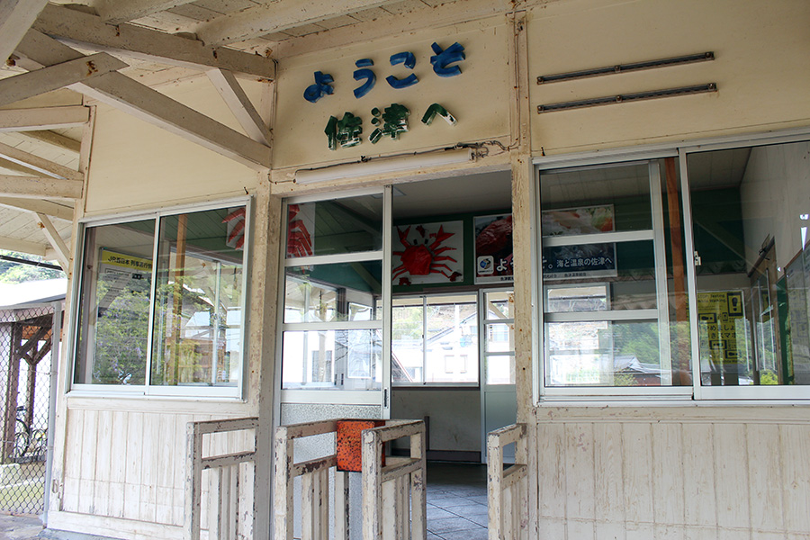 回廊つきの木造駅舎で、兵庫県で最北端の駅です。