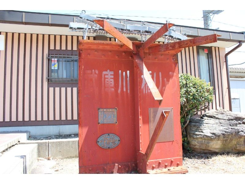 駅前には複線化により架け替えられた武庫川橋りょうの一部が設置されています。