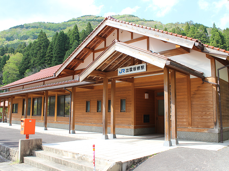 石州瓦がなんとも目に鮮やかな木造駅舎です。地元産の木材を用いて建築されており、集会所が併設されています。