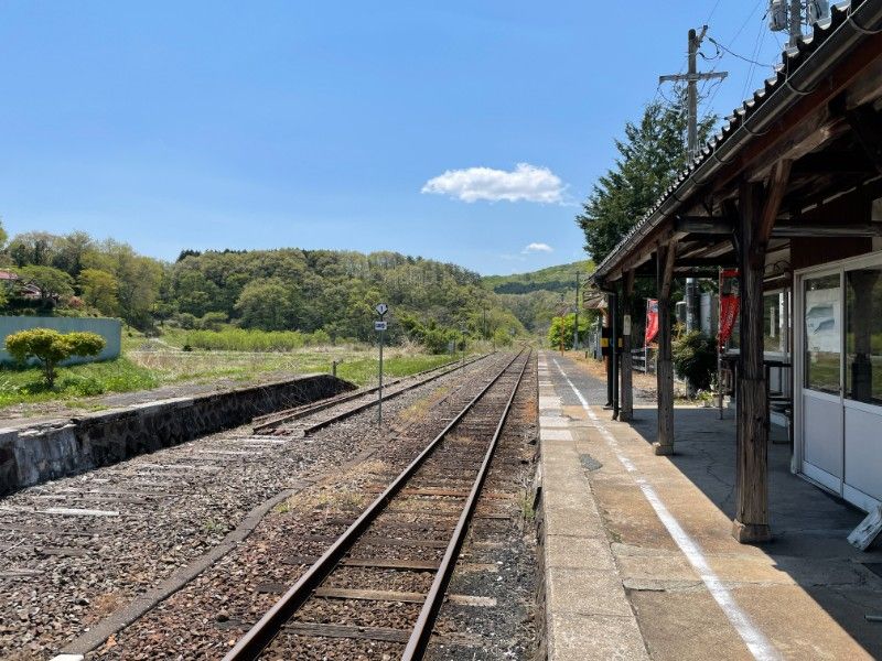 古い木造駅舎です。タクシー会社の営業所が入居しています。80年以上前に開業したこの駅もまさかタクシーの車庫になろうとは思ってもみなかったことでしょう。