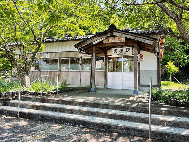 駅名の「河原」ですが、駅が所在する郡家町ではなく隣町の地名なのだそうです。ちなみに地元の方は「かわばら」と呼んでいるそうです。