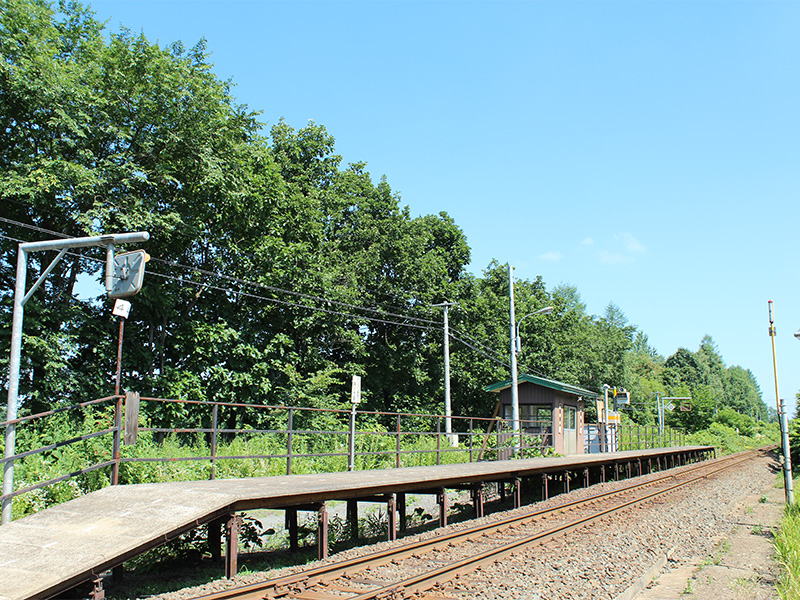 周囲に人家はほとんどなく、木造鉄板張りの待合室は、のどかで癒しの雰囲気を出しています。ただ、ホームのすぐ横に踏切がありトラックなどの交通量が多くてうるさいのと、周辺は鉄道防雪林に囲われており開放感は低く感じます。