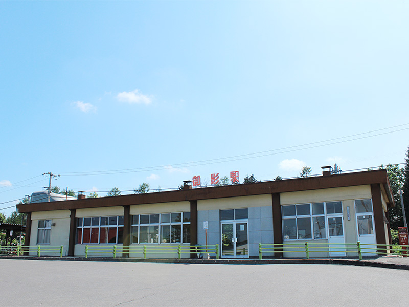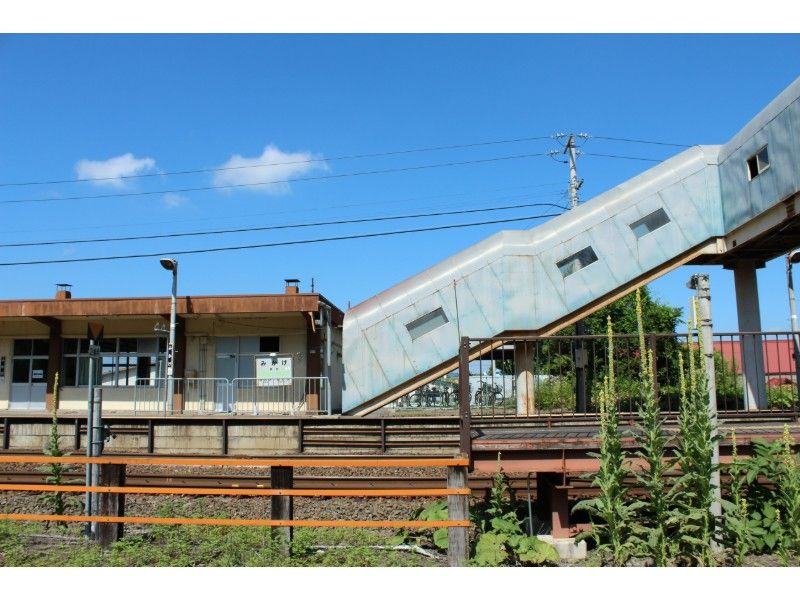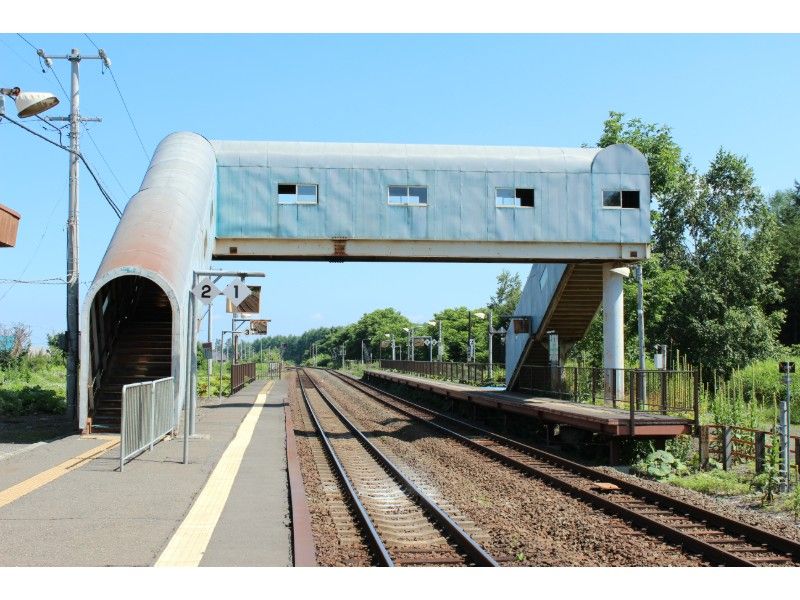 跨線橋の窓がちょっと変わってる感じがします。遠く見渡すと、日高山脈の山々が絶景です。このあたりから見るのがいちばん山が迫って見えます。