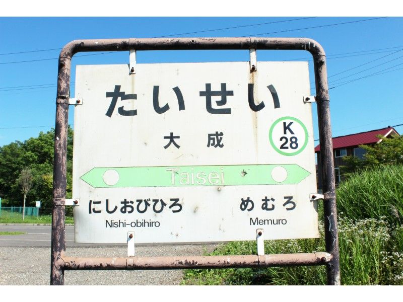 地名は「東芽室」で、駅名も「東芽室」の予定でしたが、近くに道立高校があり、通学が主体であることから、駅の発展と通学生の将来を合わせて「大成」としたようです。