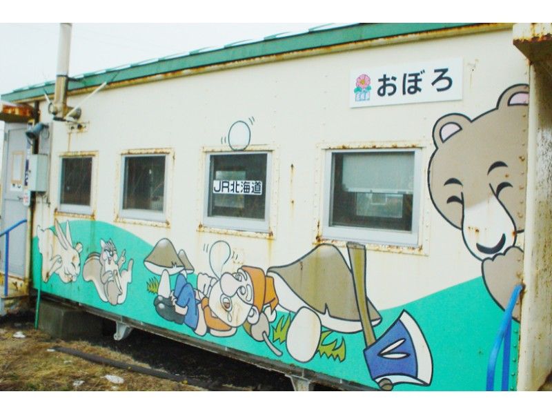 横にある花壇と貨車駅に描かれている図柄が、地元の方々の優しさを感じさせます。