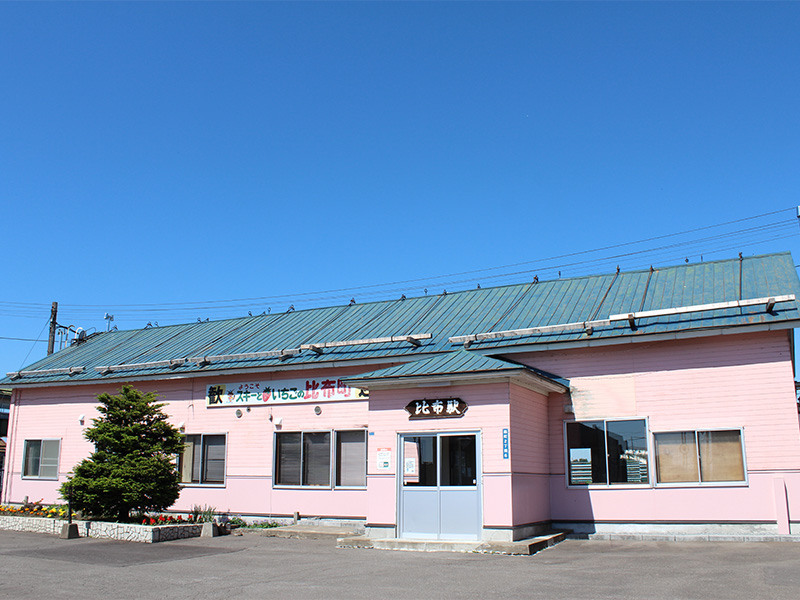 駅舎は比布名産のイチゴをイメージしたピンク色に塗られ、かわいい感じがします。喫茶PePeも結構人気みたいです。