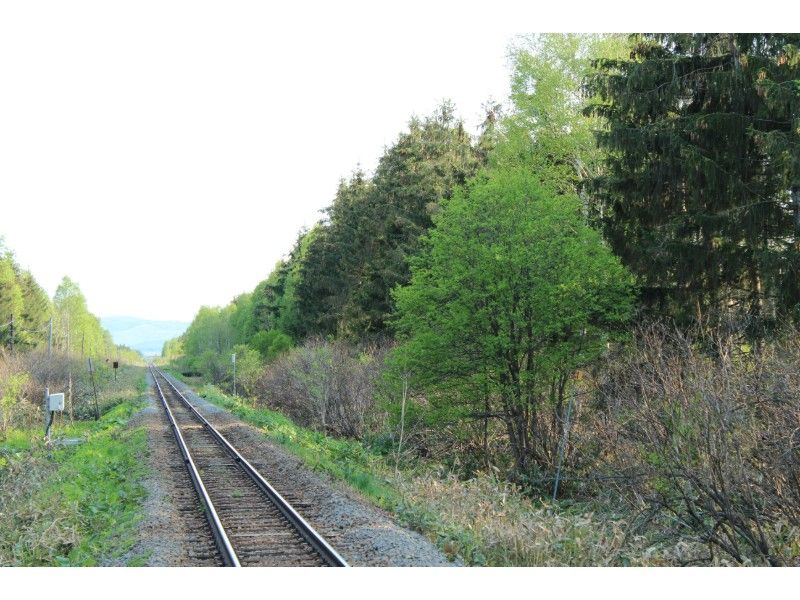 駅周辺には針葉樹の人工防雪林があります。駅前は交通量も少なく防雪林に生息する鳥の声のみが聞こえてきました。