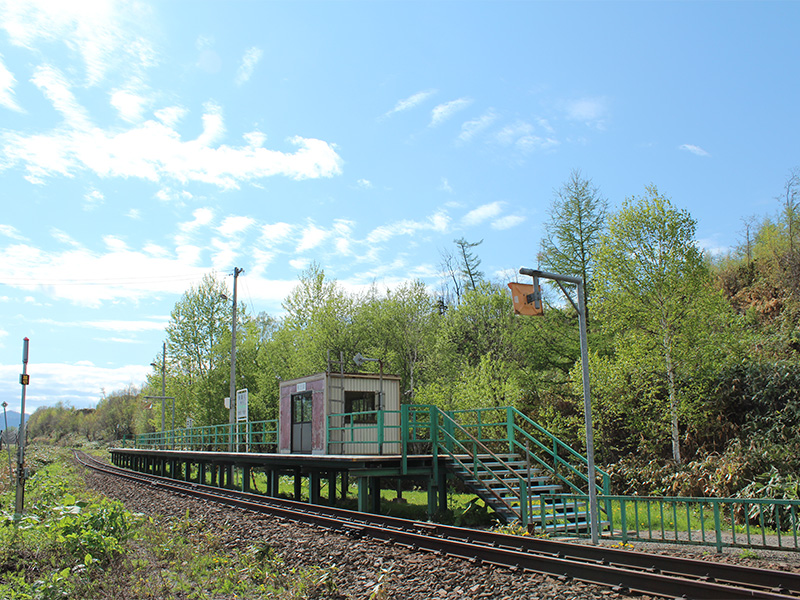 もと、仮乗降場でした。平成3年12月に智恵文寄りに120メートル移転しホームも待合室も新しくなりました。駅から智恵文方面に徒歩10分行ったところに、「ひぶなの里」があります。道沿いの休憩スポットとして整備されています。