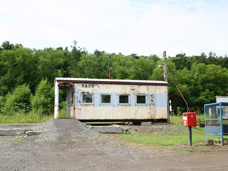 生々しく残る旧駅舎の土台や、交換駅であったことの名残の線路のカーブがむなしく感じます。アイヌ語のトイカンペツ(土のかぶさる川の意味)に由来します。豊神別(とよかんべつ)と書くこともあるようですが、これはこの地区の人たちが宗教心が厚く、豊かになることを願ったものだと言われています。今も駅の北西には立派な問寒別神社が建っています。昭和5年から昭和46年まで問寒別駅前から問寒別川に沿って幌延村営軌道が出ていました。沿線には炭鉱があったほか、戦後まで入植者がおりました。特に後期の入植者はほとんどだまされるようにして連れて来られ、戦後に至ってもほとんど縄文時代と変わらない掘っ立て小屋で開拓にあたったと言われています。