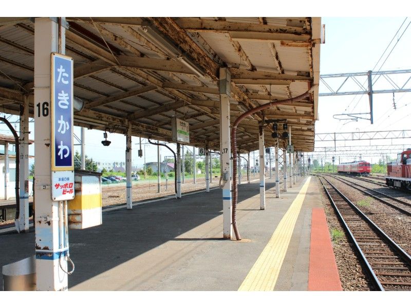 滝川駅は昭和37年築の典型的な白い鉄筋コンクリートの建物ですが、それでありながら温かみがある駅です。待合室には正統派の立ち食いそばや、商売熱心な薬局があります。近くにコンビニは見当たりませんが、駅前のSEIYUと地下通路で結ばれており、買い物には便利です。尚、待合室は下り利尻が発車してから上り利尻が到着するまで締め切られます。ホームは7番までありますが、函館本線の他の駅と同様中線も含んでおり、実際には3面5線。島式ホームには蒸気時代そのままの洗面台がピカピカに磨かれて現役で使用されており、貫禄があります。札沼線新十津川駅までは約4kmと超近いです。