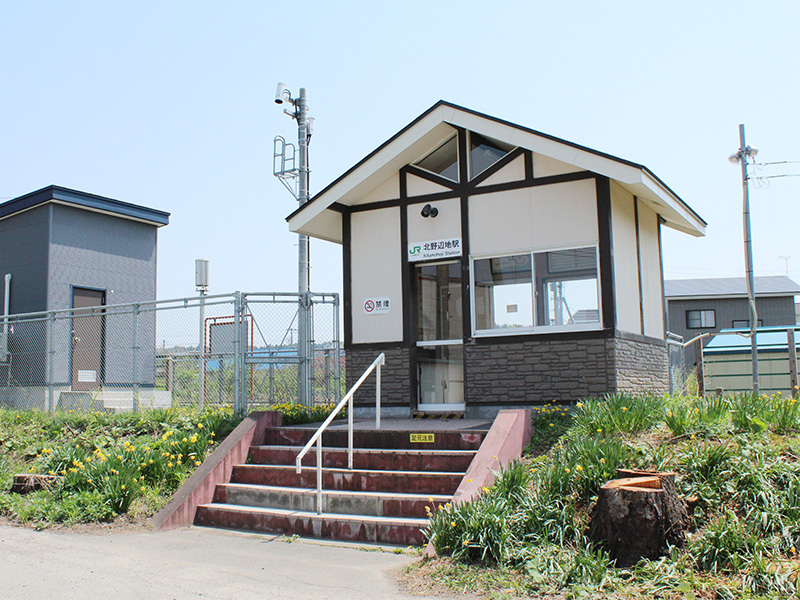野辺地の北の方向にあるので「北野辺地駅」と名付けられたと思います。カラフルな列車がこの駅に停車せず通過して行きました。