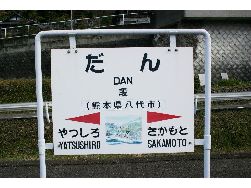 球磨川の鮎釣りを描いた駅名標が印象的でした。