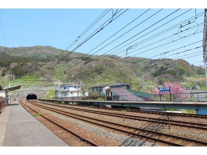 トンネルの間は345メートルに限られ、この関係で全長60メートルの名立川橋梁の上にホームがかかっている状態です。