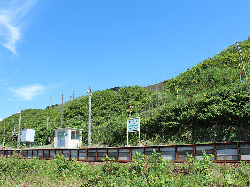 駅から見える瀬越浜は赤さびた風景で長閑です。