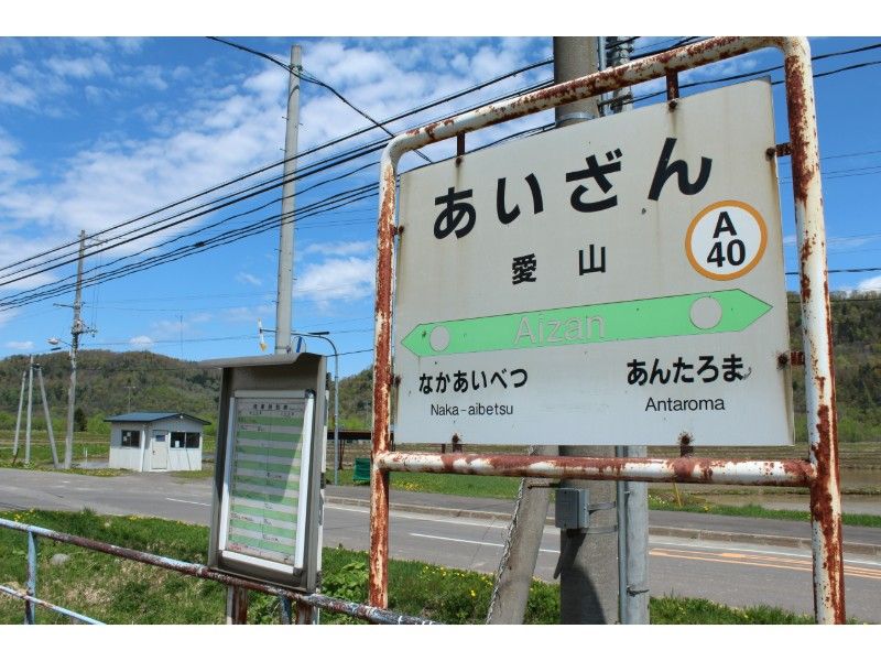 愛山渓温泉の「愛山」をとって駅名としました。「愛山」の由来は、明治30年に入植した人々が愛知県と山形県の出身であったことから、両県の名称を合成したものです。