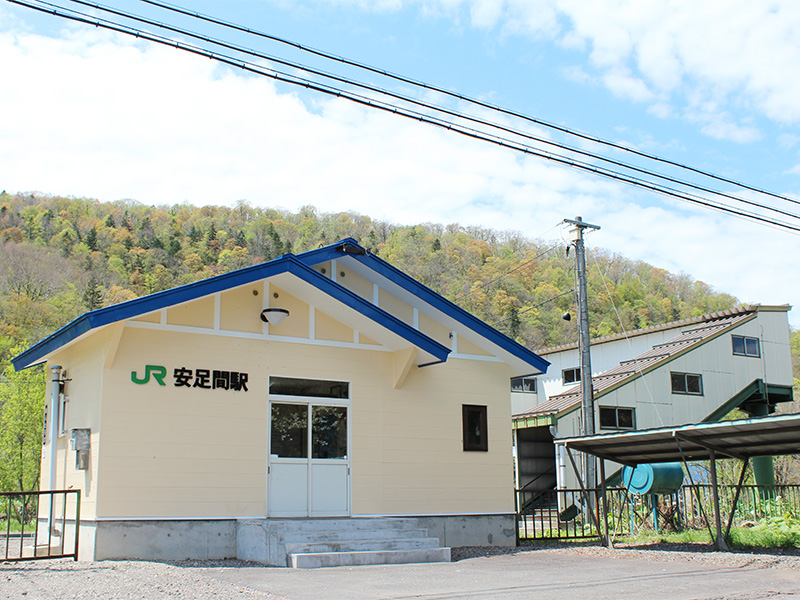 CTC化により、停車列車はすべて1番ホームに停車します。駅名はアイヌ語の「アンタル・オマ・プ」(片岸にあるもの)の意味です。