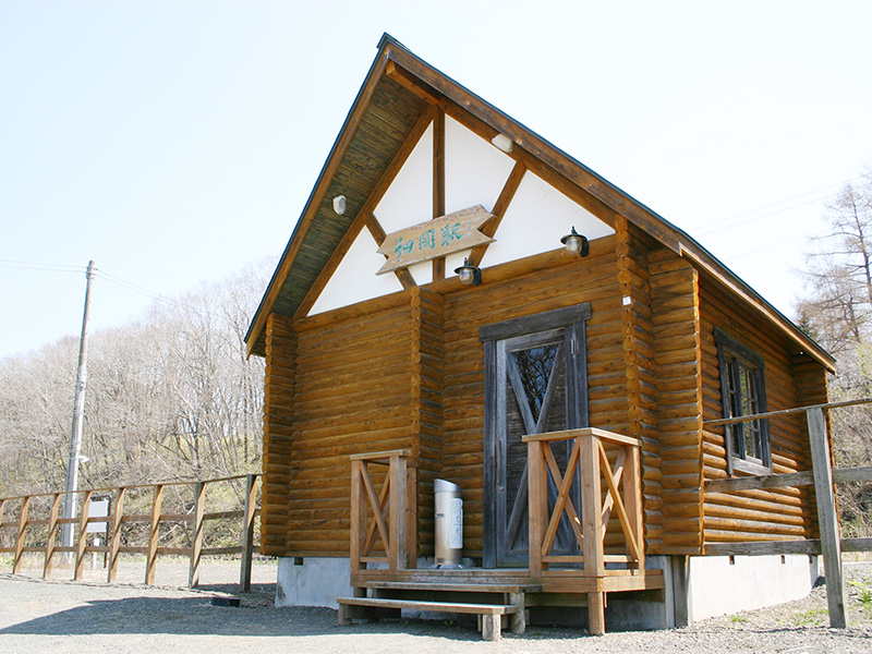 山小屋風ログハウスの駅です。
