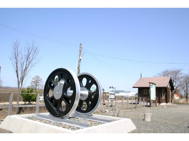 なぜか駅の横には真新しい「車輪」が展示してありました。