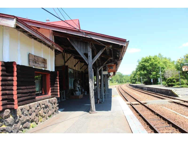 イチイの丸太を活用したハーフティンバー様式の山小屋風造りの貫禄ある駅舎です。