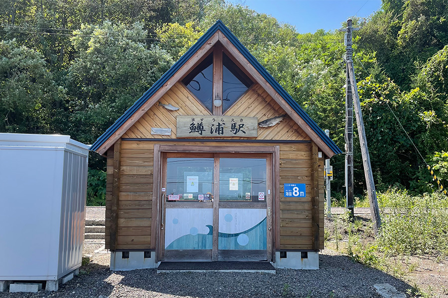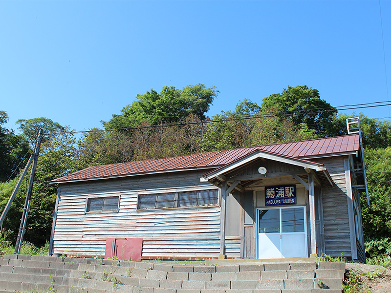 昔懐かしい石段と木造駅舎です。はだか電球がなんともいえません。