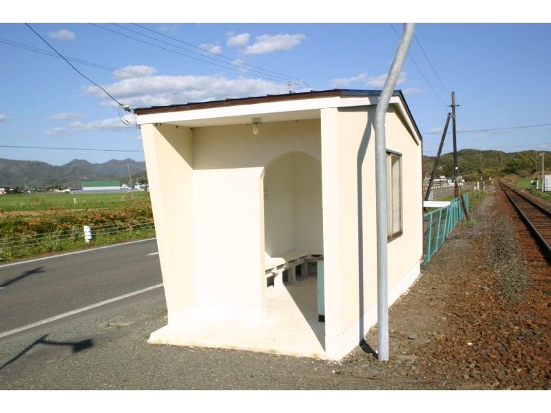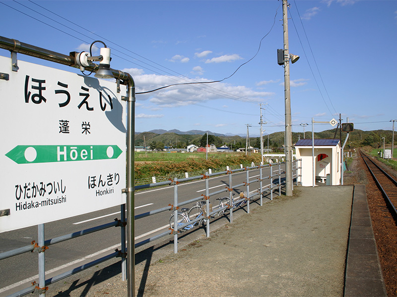 水田の中にある駅です。「蓬来岩」はふたつの奇岩からなる標高60メートルの山で、その由来は川から下ってきた怪物と住民が戦い、死んだ怪物が岩になったなど、いくつかの昔話があります。