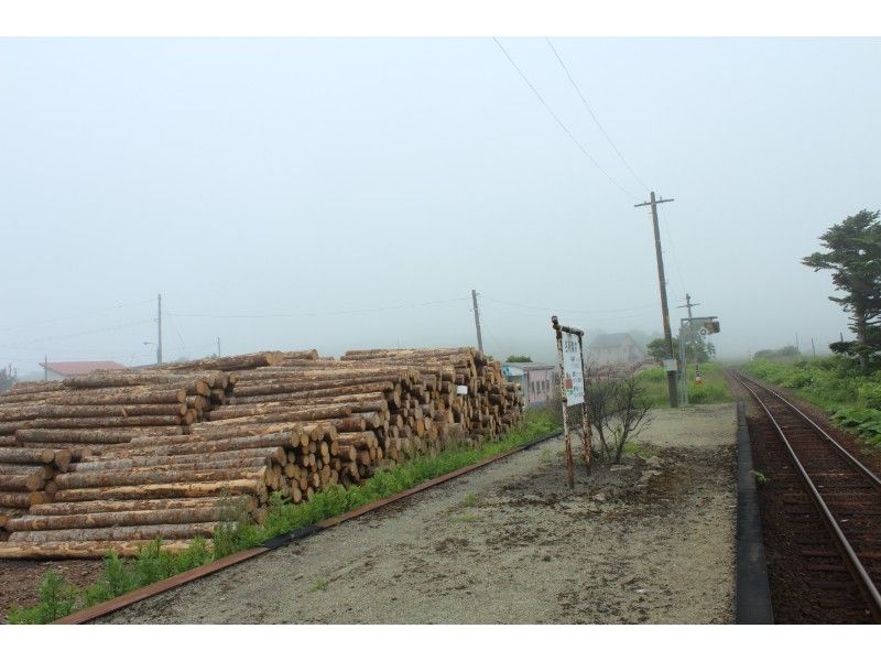 駅前の広大な敷地は材木置場になっています。