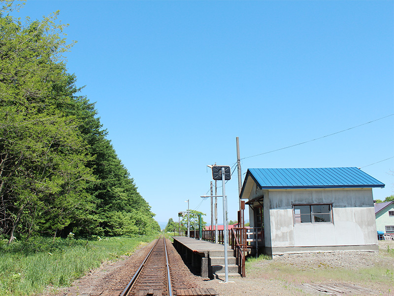 畑の中にある木造モルタル小屋の駅舎です。