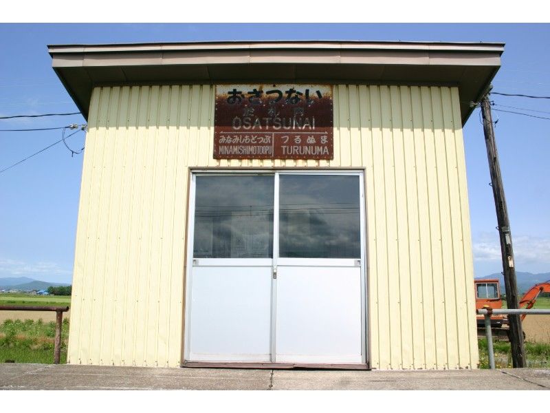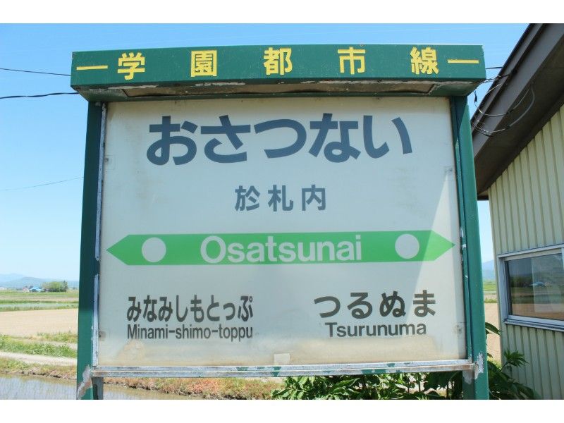 駅名の由来はアイヌ語で「オ・サツ・ナイ」(川尻が・乾く・川)からでたもので、川底が渇く川の意味です。この地は昔から夏は暑かったことなのでしょう。駅舎の上の駅名標が物語っているような気がしました。