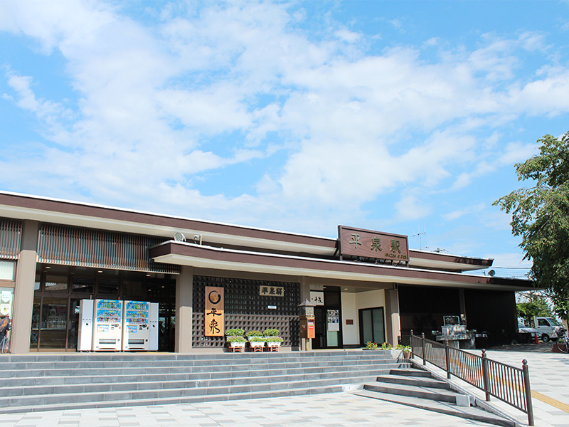 「藤原三代の栄華を現出した古都・平泉の玄関口にふさわしく、屋根に平安朝様式を取り入れた駅舎」として、東北の駅百選に選定されました。また、第二次世界大戦中、アメリカ軍機に受けた跨線橋の機銃掃射の弾痕が現在、平泉駅待合室に展示されています。