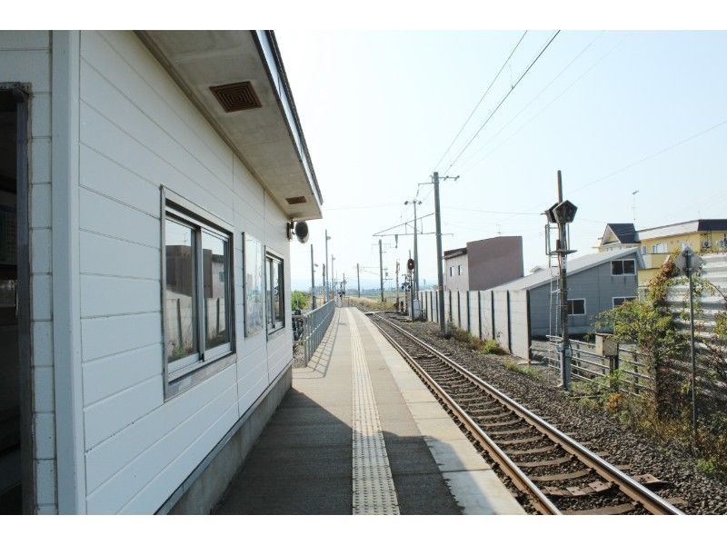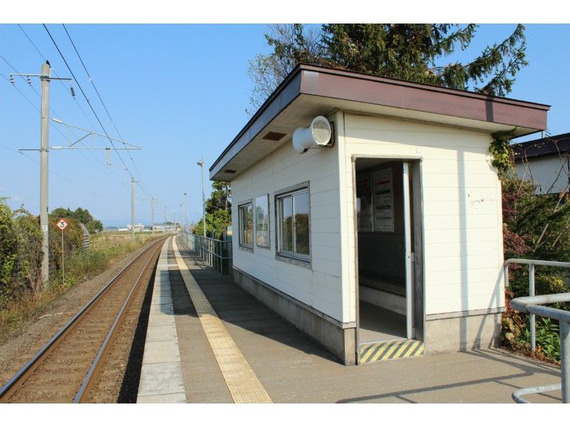 ホームに待合室が設置されています。当駅設置にあたっては、すぐ隣にある寺院が土地を寄付したとのことです。