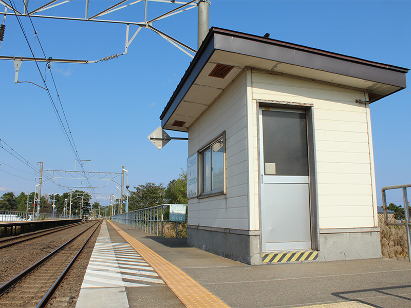 駅舎はなく、ホームに待合室が設置されています。線内では珍しく、構内踏切が設置されています。
