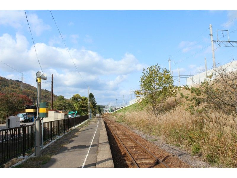 ホームの前にある階段を昇ると海峡線の津軽今別駅がありましたが、新幹線開業と引き換えに奥津軽いまべつ駅に移転するかたちで廃止されました。