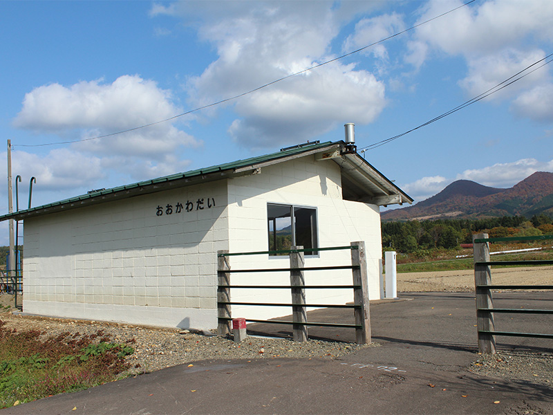 このあたりでは標準タイプの駅舎で、「大平駅」同様ブロック造の待合室が設置されています。周囲は小さな集落が広がる農村地帯ですが、隣接両駅との駅間は2kmあまりという、非電化地方ローカル線らしからぬ駅間距離は、本州最果てに近い当地における、かつての貧弱な道路事情を端的に物語っているようです。