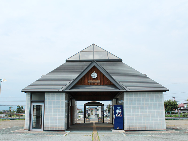 待合室とトイレのみの簡易な駅舎です。平成12年に新築されたこの駅舎は屋根上の灯り取り窓もかなりくすんできたようです。