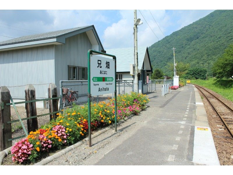 素朴な駅名で、お兄さんの畑なのでしょうか?「兄畑駅」です。きれいに整備された花壇が印象的でした。