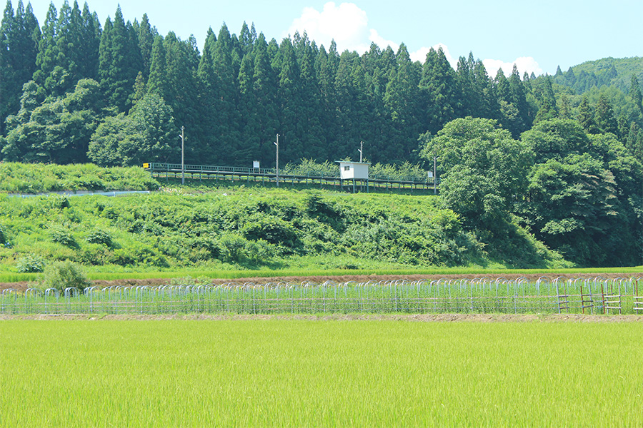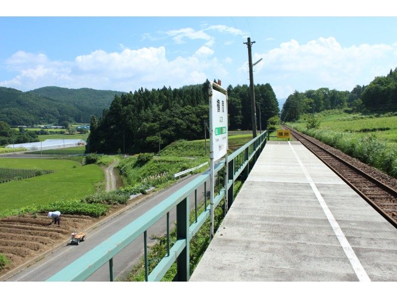 見渡す限り田園地帯です。花輪線でいちばん新しい駅です。高齢者にはキツい小高い丘に設置された簡素なホームに待合室が設置された簡易駅です。