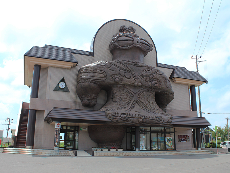 今まで数多くの個性的な駅を訪問しましたが、これほどインパクトある駅はないでしょう。というのも、この駅の建物が巨大な土偶の形をしているのです。