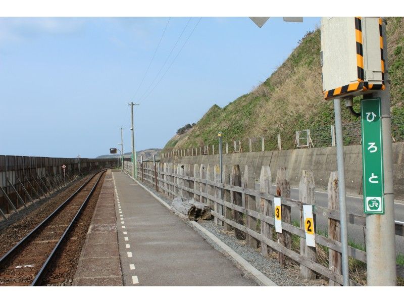 ホーム目前に日本海が迫りますが、防潮の金網柵によって視界が遮られてしまっているので、景色はいまひとつです。