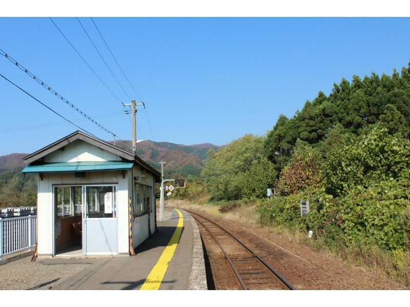 かつては交換駅でしたが棒線化されています。中央に設置された待合室はかつての賑わいの名残を示しています。