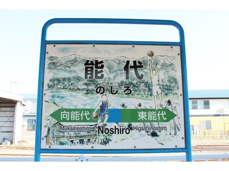バスケットボールの街、能代です。駅のホームにもバスケットボールのネットが設置してありました。