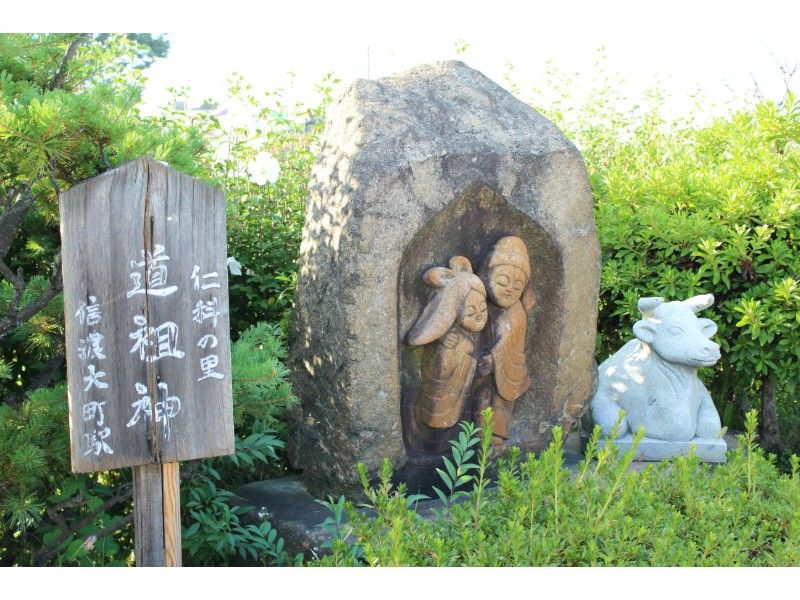 道祖神の隣に牛の石像が。
