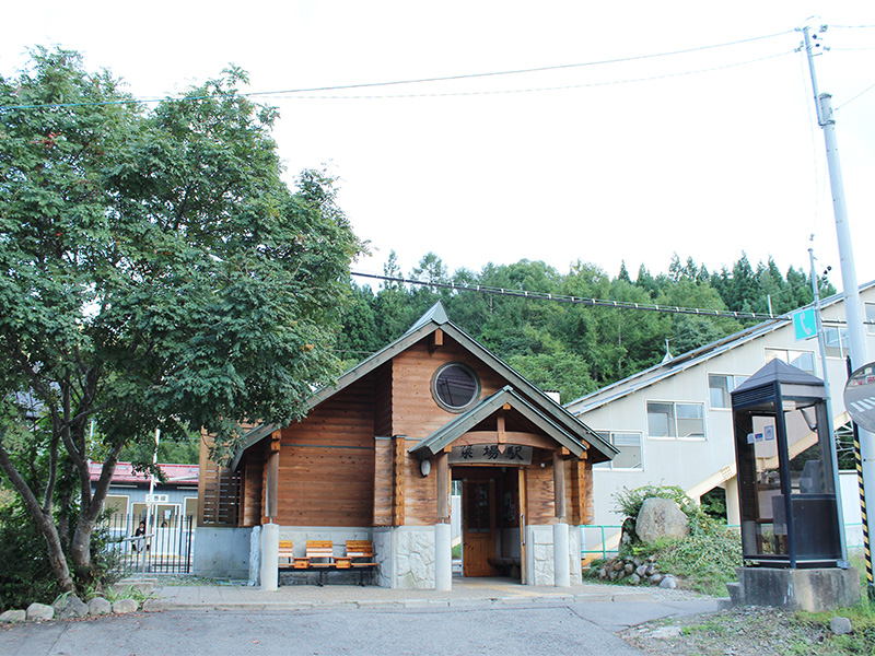 駅名看板は旧駅時代のものを使用しているようです。丸い天窓のアクセントが特徴です。