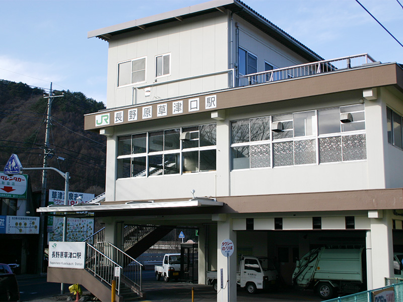 吾妻線の輸送の区切りとなる駅で、長野原草津口止まりの列車が存在します。旅客列車は全て停車。駅には待避線と留置線があり、1晩に4編成の列車が滞泊します。名湯草津温泉への玄関口で、バスに乗り換えとなります。旅客列車は全て停車します。駅舎はご覧のとおり、吾妻線唯一の橋上駅舎です。