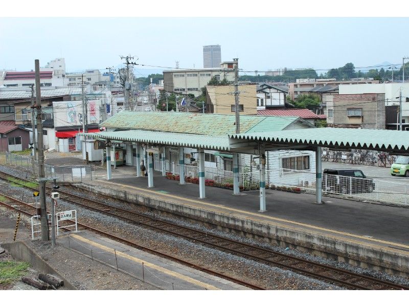 山形市の市街地北に位置し、左沢線との分岐駅で通勤通学の利用客が多い駅です。